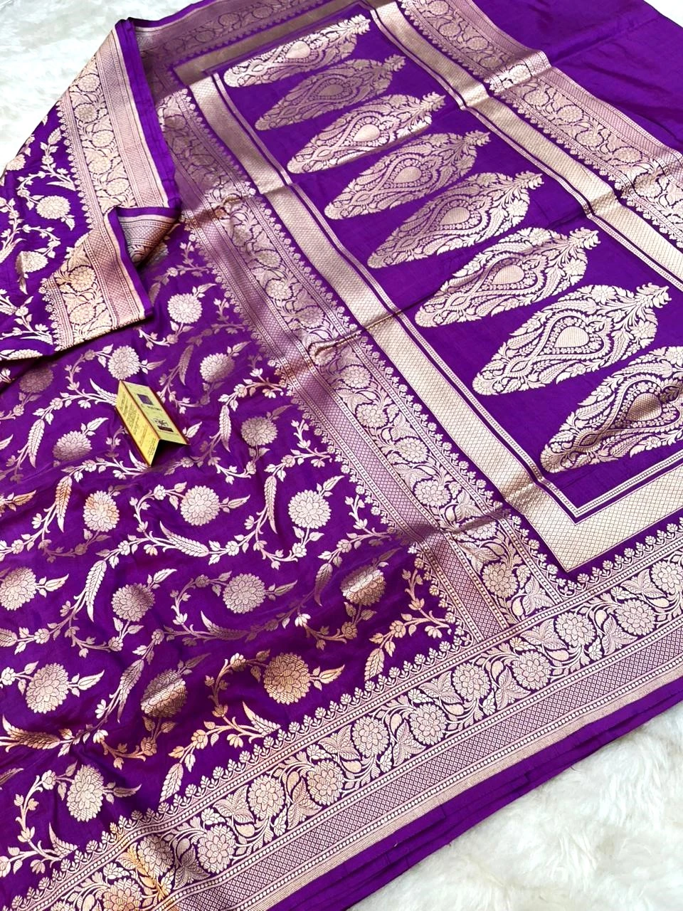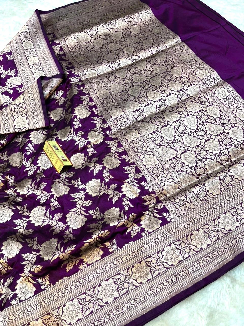 100% Pure Katan Silk Banarasi saree in Royal blue colour with zari thread work on it.